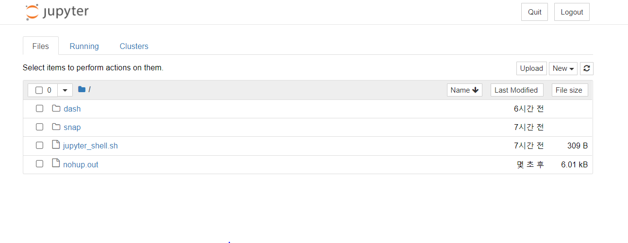 위 사진과 같이 AWS ubuntu 환경에서 jupyter 노트북이 실행되는 것을 볼 수 있다.