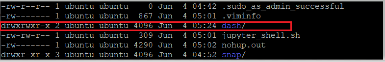 만들고 ll을 입력하면 아래와 같이 dash 디렉토리가 생성된 것을 확인 할 수 있다.